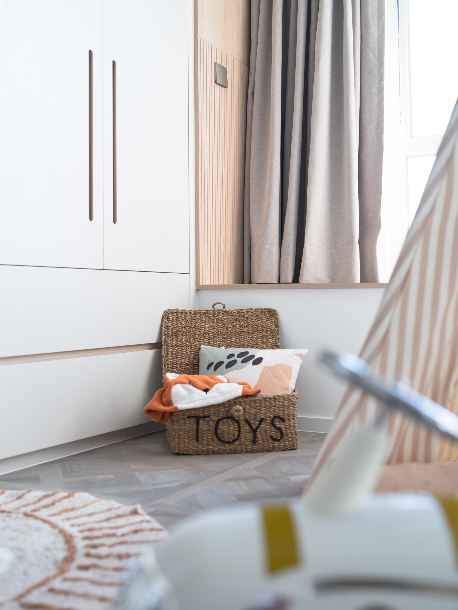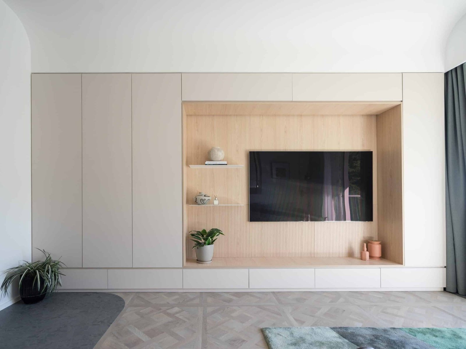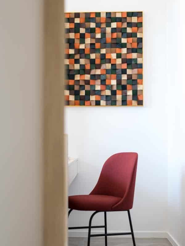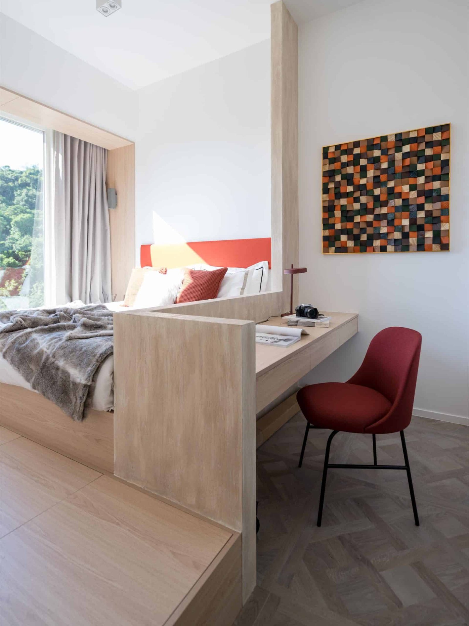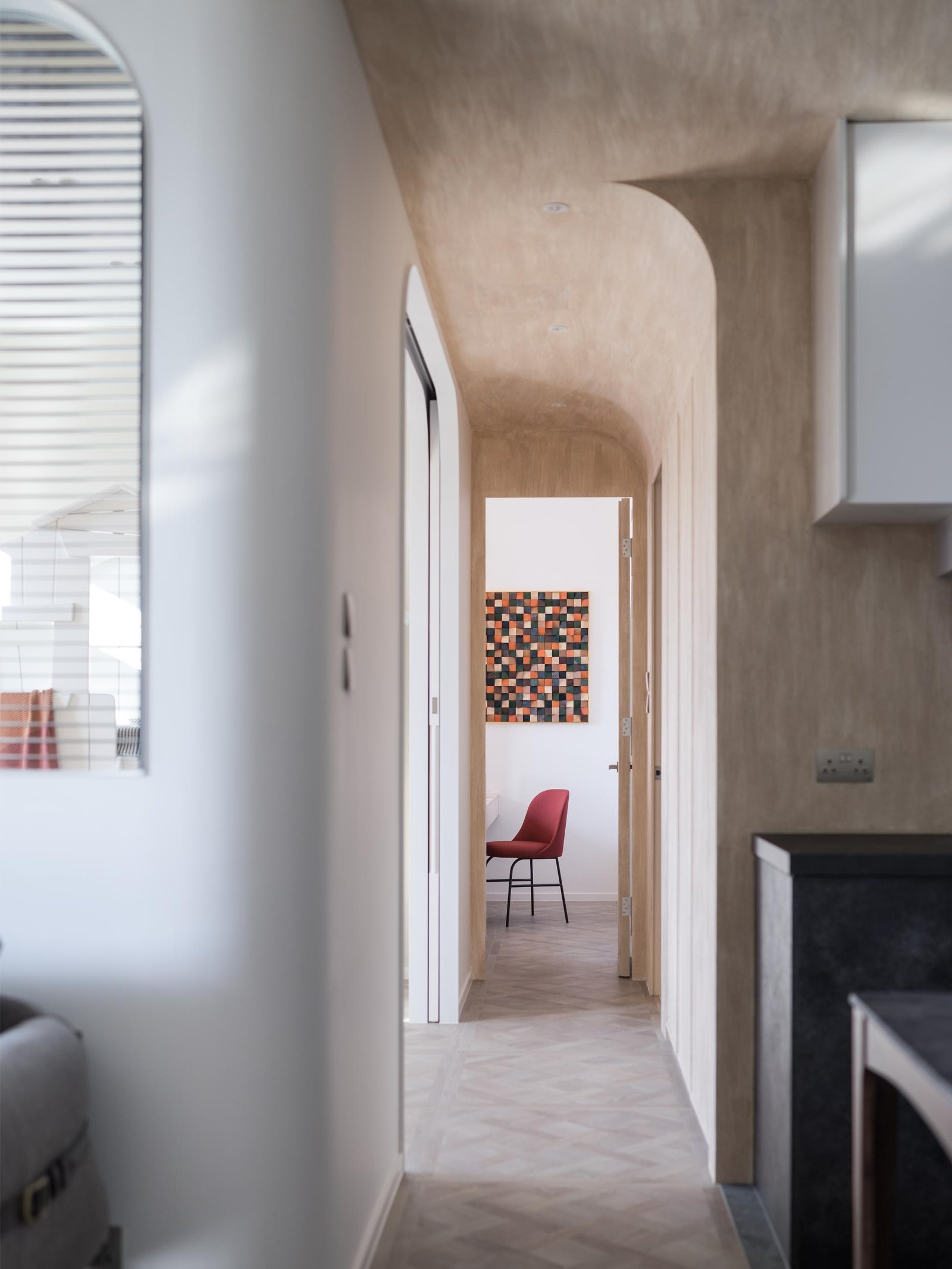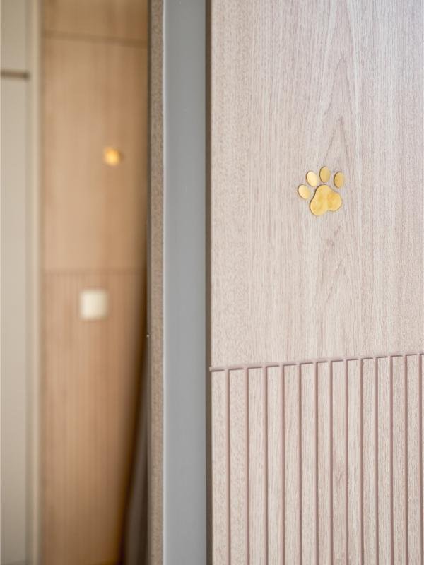 意大利殿堂級藝術油漆品牌 @valpaint.hongkong 的仿樹木紋系列的藝術油漆。選用木紋系列是為了配合單位外的榭林景色,將仿如樹榦的木紋效果增沒添其中。