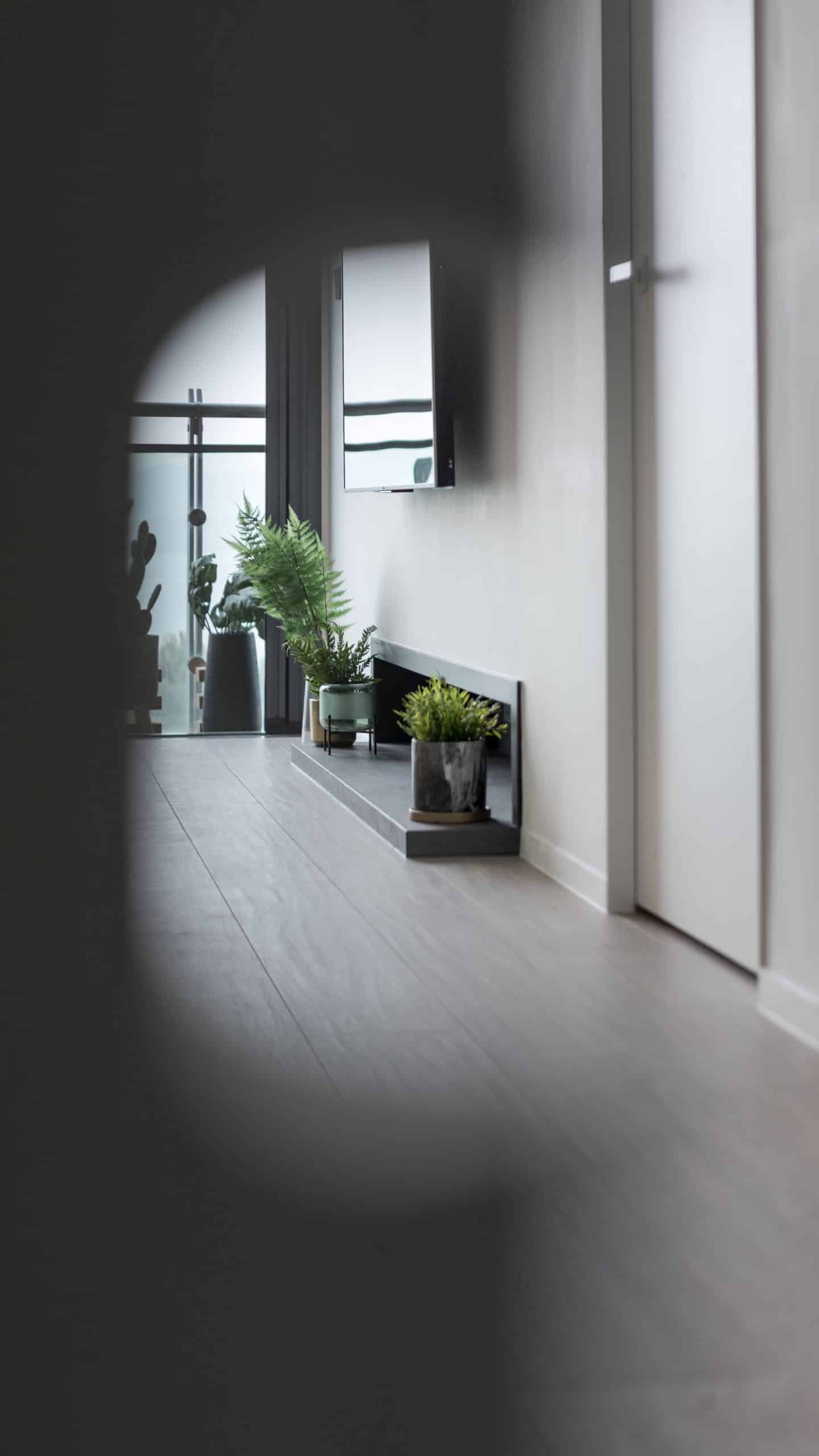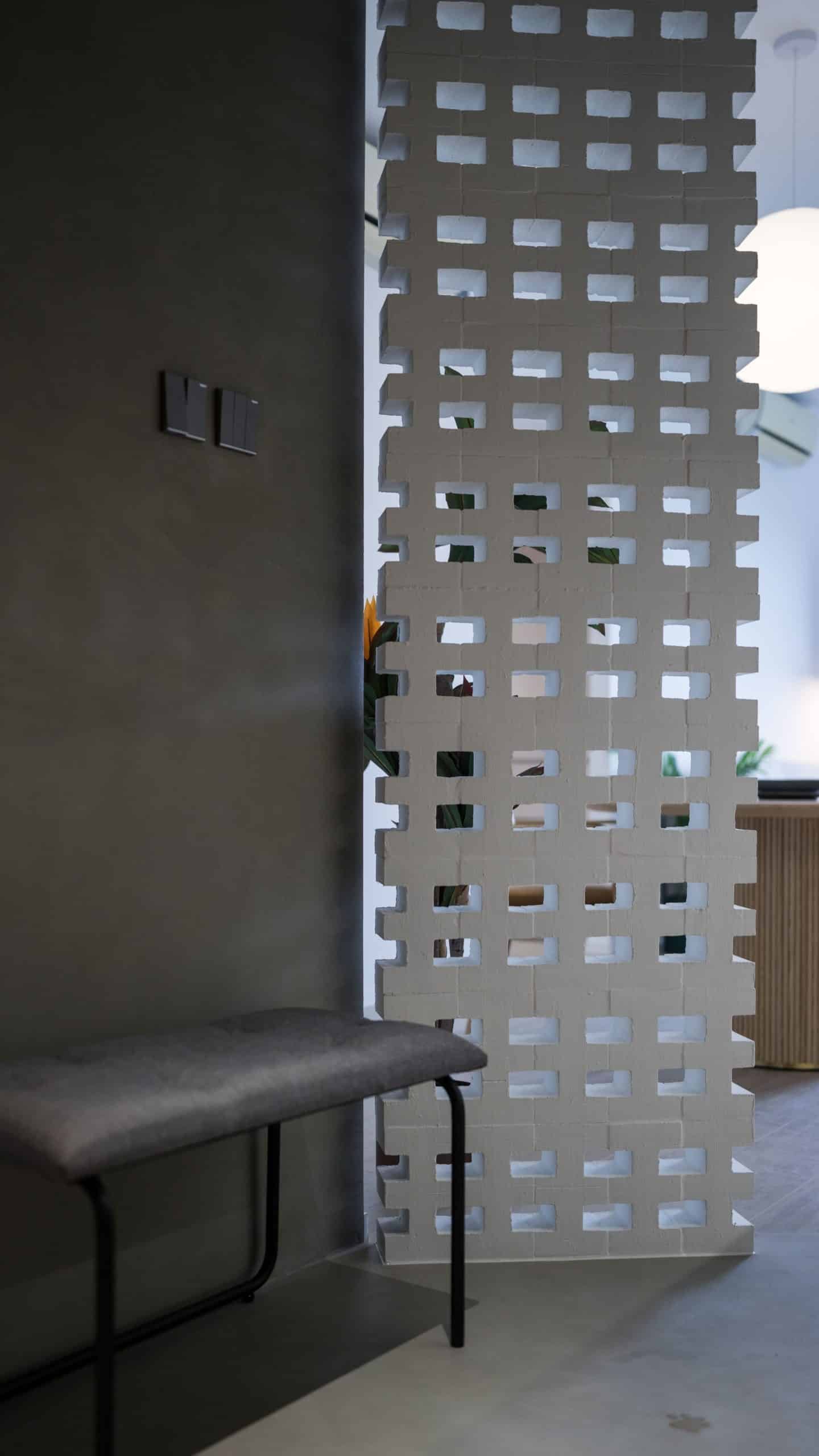 在傳統小清新的氛圍中加入自己偏好的元素,取得平衡,將其塑造得帶點暗調。全灰調水泥玄關,地面上藏著數隻貓腳掌印,低調地表現出這單位的主人翁 ,包括兩隻貓貓。