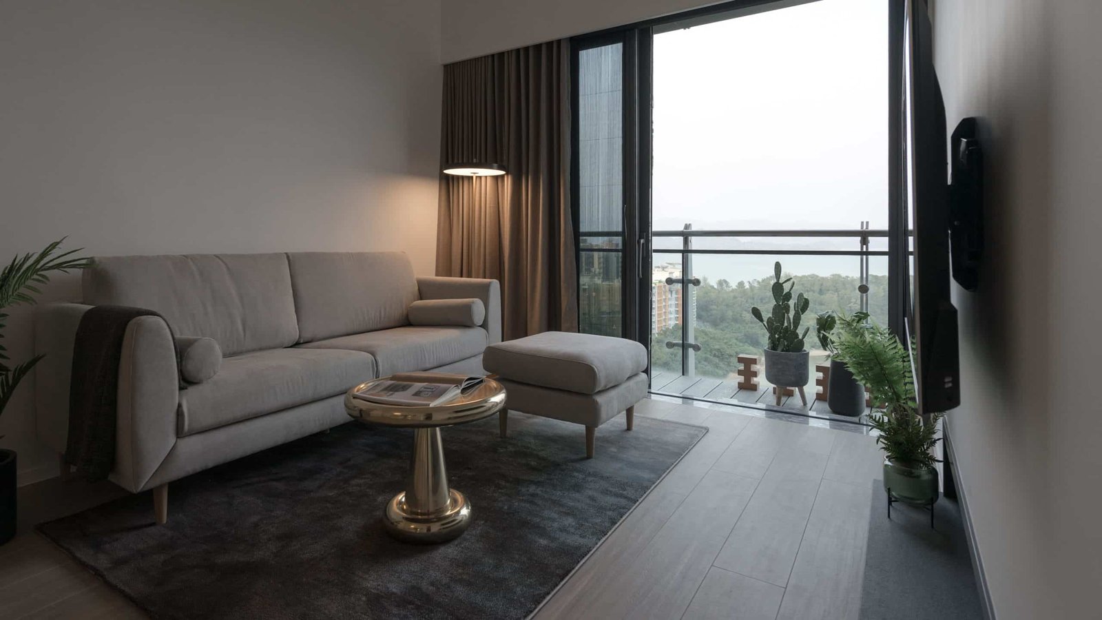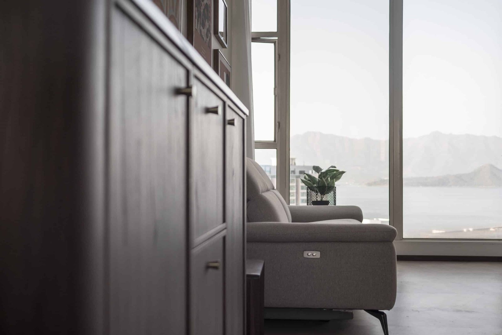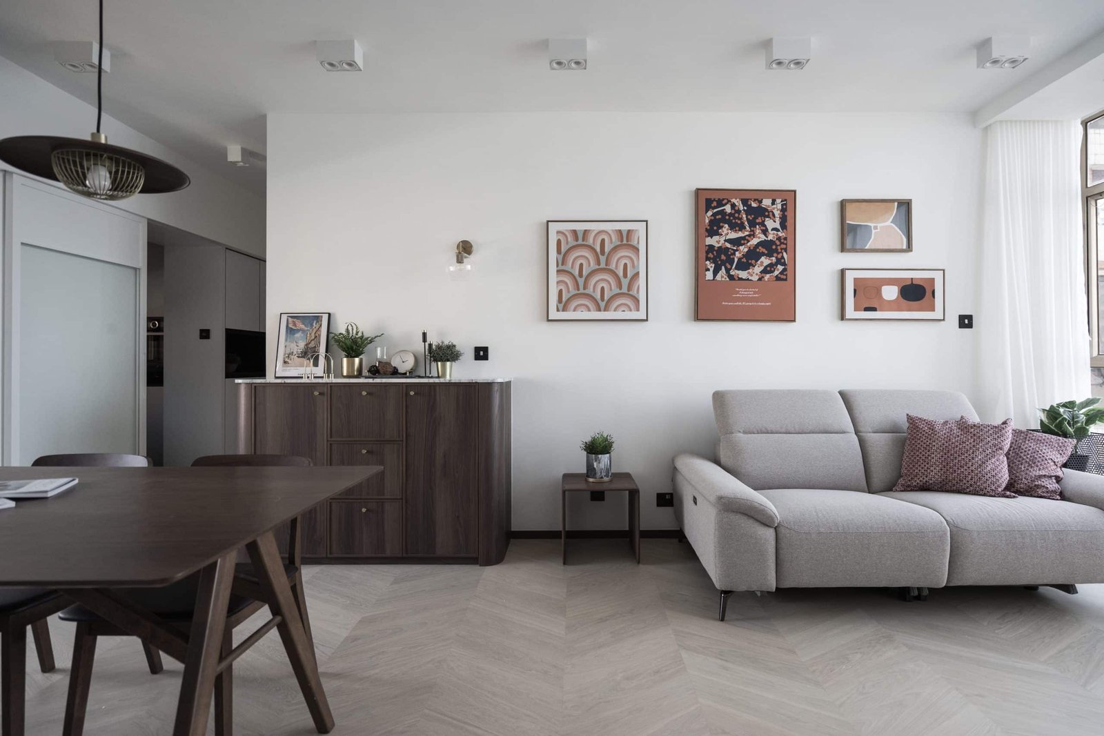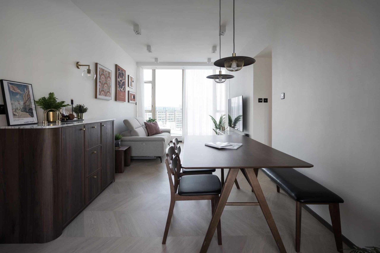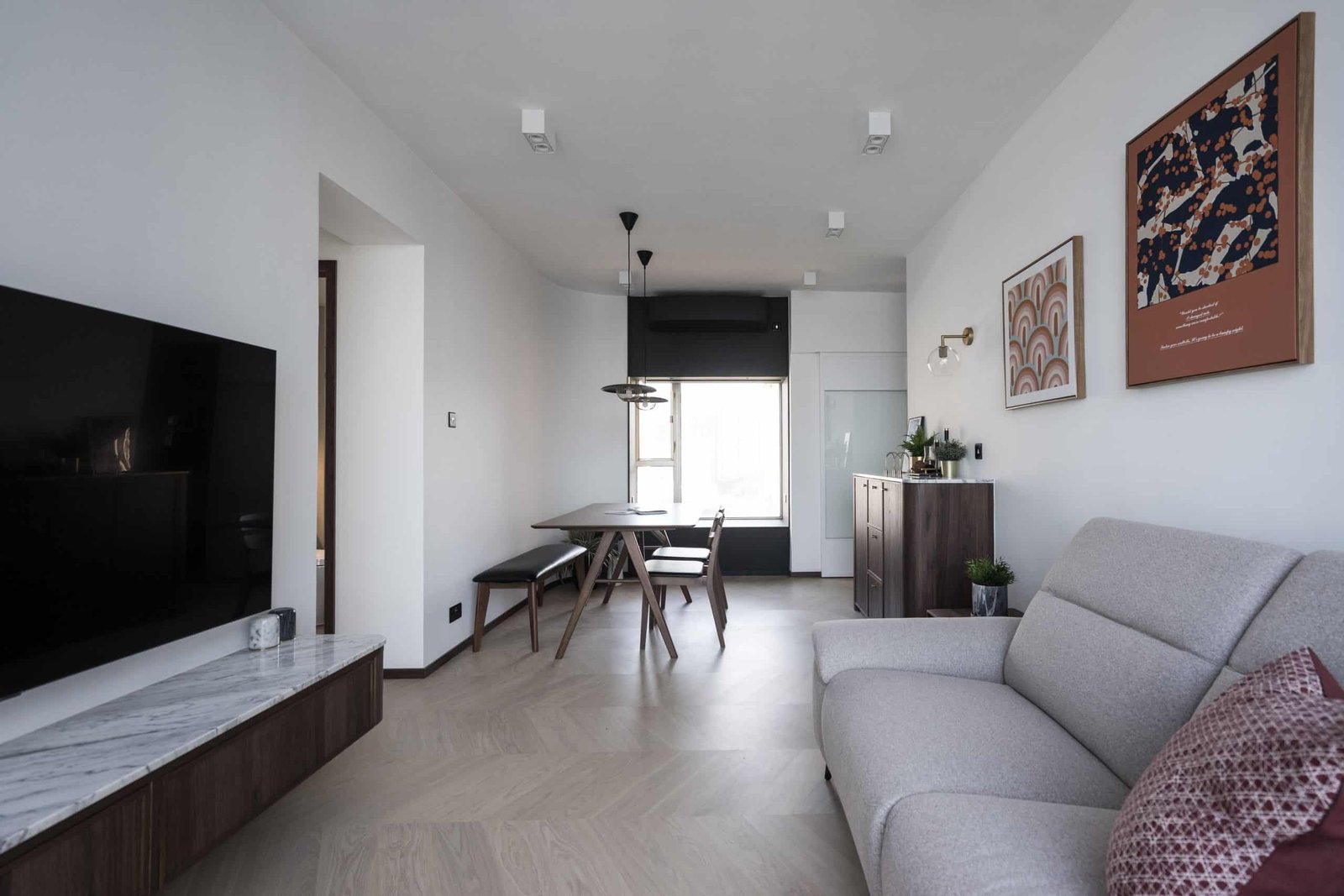是次單位在色彩上選用了比較暗一點的黑胡桃木配上北歐Nordic Style。